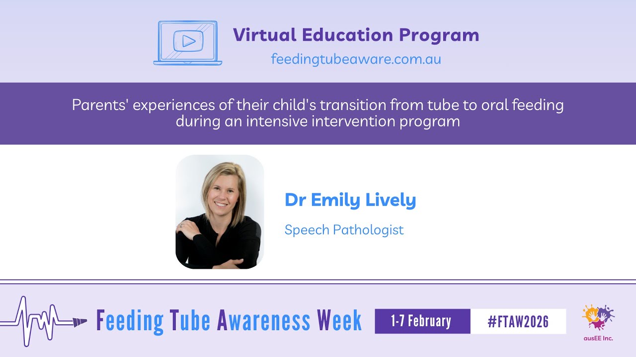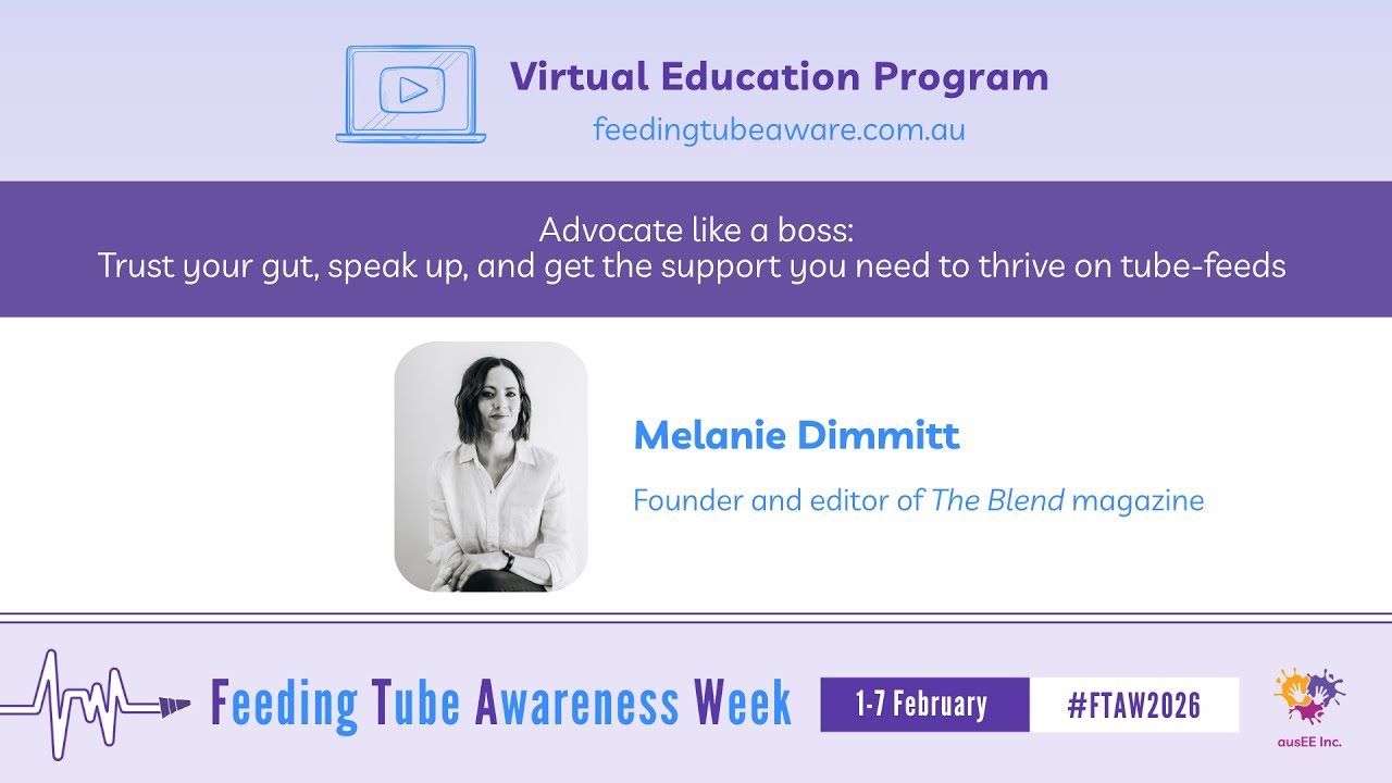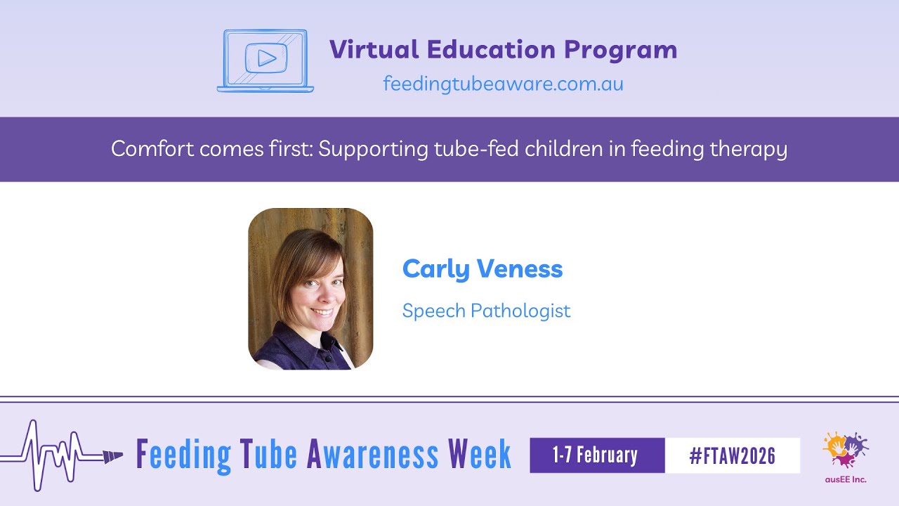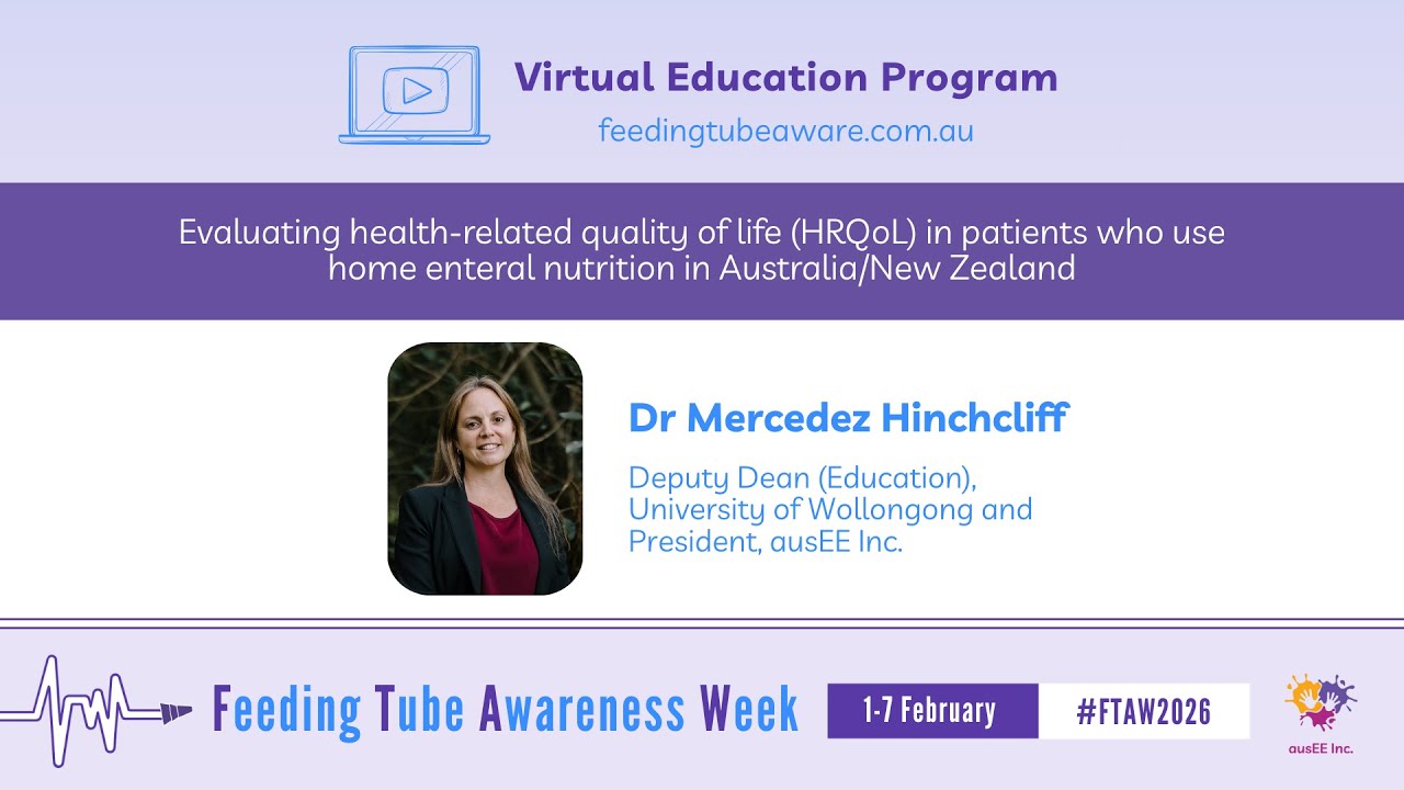 Each day during Feeding Tube Awareness Week (1-7 February 2026) at 8am AEST/ 9am AEDT, new video content will be released on our YouTube channel featuring tube-feeding specialists and people with lived experience. The videos will be shared across our social media pages and will be available for viewing from this page. All videos will remain accessible for on-demand viewing. We sincerely thank everyone who contributed their expertise to create these videos for this free Virtual Education Program. Their commitment to educating and supporting the tube-feeding community is deeply appreciated.